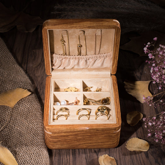 Handgefertigte zweilagige Palisander/amerikanischer Ahorn Reiseschmuckschatulle